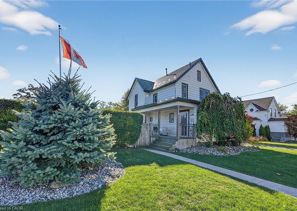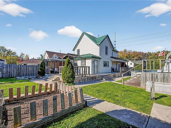 MODERN LIVING, SMALL-TOWN HEART … 261 Gilmore Road in Fort Erie sits on a large, L-SHAPED corner property that radiates curb appeal with its classic wrap-around porch and thoughtfully updated interior. RENOVATED in 2021, this 2-storey home strikes the ideal balance between modern convenience and timeless character, offering space for both relaxation and entertaining. Step through the welcoming foyer into a bright, OPEN CONCEPT living and dining area, where pot lights and LVP flooring create a warm and inviting flow. The L-shaped layout maximizes both light and space, leading into a stylish kitchen featuring a peninsula breakfast bar w/stone countertop, sleek black stainless steel appliances, and a large pantry – an everyday chef’s kitchen in both design and practicality. Just off the back MUDROOM, the MF laundry and 3-pc bath add everyday ease, while a main floor den offers flexibility as a third bedroom or home office. Upstairs, find two spacious bedrooms, including a spacious bedroom with LOFT ACCESS and another with a large closet, complemented by a modern 3-pc bath. The lower level provides ample storage, a cellar, and two crawl spaces for utilities. Step outside to your private, fully fenced BACKYARD OASIS, featuring an above-ground pool, hot tub, and hard-top gazebo on a wrap-around deck - perfect for summer evenings under the stars. A flagstone firepit and garden pond complete this SERENE RETREAT. With a U-shaped driveway accommodating up to six vehicles, practicality meets pleasure at every turn. Recent updates include metal roof & metal siding plus a 2021 furnace & A/C and for peace of mind. Ideally located near parks, the library, Fort Erie Racetrack, golf & country clubs, and the Peace Bridge, this home offers the best of small-town living with modern style and unbeatable convenience. CLICK ON MULTIMEDIA for video tour, drone photos, floor plans & more.
