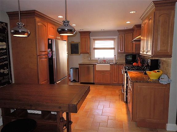 The charming farmer's porch welcomes you to this beautiful and unique 5 bedroom home offering many options for room usage. Need a first floor bedroom and full bath? This has it. Want a gorgeous kitchen with maple custom cabinetry, granite counters and ceramic farmhouse sink? Here you go! Gas fireplace in living room and custom book shelves. All hardwood floors in the living areas, ceramic in updated baths. The family room/ sunroom has a dramatic cathedral ceiling and fan as well as authentic pine wainscoting and windows overlooking back yard. Upstairs one finds a sprawling Master with triple closet with California Closet style built -ins and two additional bedrooms. Central air for 1st floor. Huge finished basement for playroom, "man" cave etc. Buderus furnace, storage room and an oversized 2 car garage. "Trex" style deck and porch. Wonderful yard! This has it all!