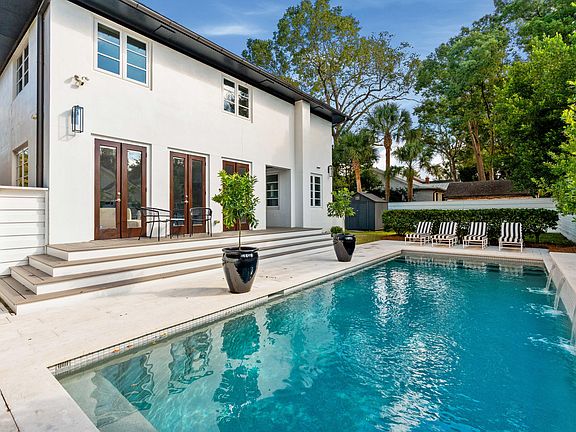 This Grove Street address places you in one of Wagener Terrace's most desirable spots--steps from Hampton Park and a short golf cart ride to downtown dining. The property spans a spacious .17-acre lot and a half, a rare find in this neighborhood. Close enough to enjoy, yet removed from the downtown rush, it also sits on high ground and does not require flood insurance. The house itself, a 1955 mid-century modern, carries its history with an ease that feels current. A three-sided fireplace anchors the living spaces, while natural light pours through carefully sourced double-glazed casement windows chosen to replicate the originals. Three sets of French doors swing open to the deck and pool, blurring the edge between indoors and out. The kitchen is open to the main living area,equipped with Bosch appliances and a breakfast nook overlooking the backyard. Upstairs, the primary suite takes on the role of retreat. There is room to breathe, space to relax, and even a private laundry area. Two guest bedrooms line the hall, while downstairs a flexible room with a full bath offers its own possibilities - an office, a den, or a bedroom tucked conveniently on the first floor. Behind the walls, the hard work has already been done. Within the past decade, the roof, wiring, plumbing fixtures, and HVAC were all replaced, with spray-foam insulation added in the attic. More recent upgrades brought the systems fully current: a fully encapsulated crawlspace with dehumidifier, brand-new Trane HVAC units, updated ductwork upstairs, LG washer and dryer, Visual Comfort lighting, new fencing, and a full interior repaint. Out back, the yard takes on the feeling of a private garden. Mature hedges frame the heated pool, newly planted trees add shade and scale, and the lawn stretches wide enough for gatherings or play. The entire rear is enclosed with fencing and a gated entry, ensuring privacy from every angle. Even the front lawn is designed as usable space, a crisp foreground to the house with its geometric boxwoods and vertical lines of Italian cypress. For those who imagine more, plans drawn by Beau Clowney accompany the sale. His vision adds a winged addition with a garage and upstairs primary suite, as well as a pool house - modern touches that expand the home while honoring its original lines. This is not just a house in Wagener Terrace. It is a rare balance of mid-century character and modern updates, a property ready for immediate living, and a lifestyle centered on neighborhood energy, private retreat, and the ease of Charleston at your doorstep.