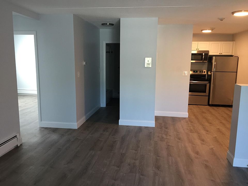 Spacious apartment with private balcony. Heat & Hot water included. New fully appliance kitchen with stainless steel appliances Including microwave, dishwasher and disposal. NEW flooring and NEW bathroom. Lots of closet space. Located in a quiet area but only a 5 minute drive to Rt 93 and Rt 3. It is over 900 sq ft. Private intercom system, laundry facilities and OFF St designated parking. Privately owned and managed. with 24 hour emergency maintenance on hand. Owner pays for Heat & Hot Water, trash and maintenance
