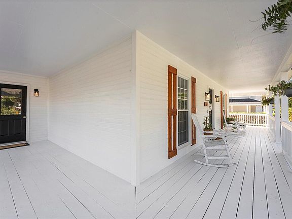 Cozy fireplaceLarge fenced backyardPartially covered deckSpacious wraparound front porchFreshly painted white exteriorBrand-new carpetHardwood flooring