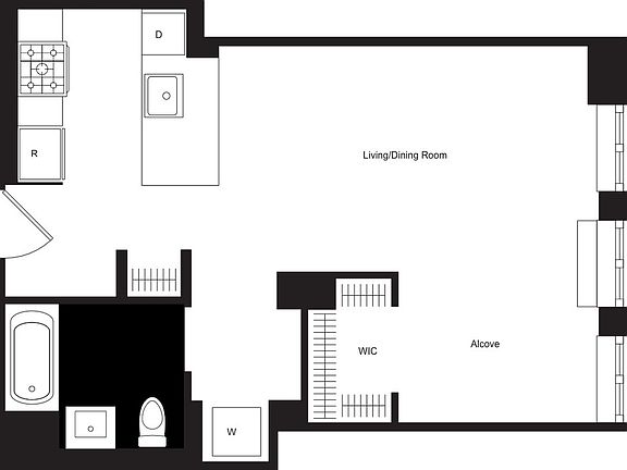 Spacious Alcove Studio, 1 Bath with eastern exposure, featuring an open gourmet kitchen with Bosch-integrated stainless steel appliances, walk-in closet, oak floors throughout, stainless steel appliances, floor-to-ceiling windows, in-home washer/dryer, and marble bathroom. 261 Hudson is New York architecture at its 21st Century best. Paying homage to the industrial grandeur of West Sohos iconic manufacturing and warehouse buildings, this 12-story luxury apartment building near the corner of Hudson and Spring reflects an evolving neighborhood that offers hip, hidden gems. From 261 Hudsons marble lobby to its private landscaped garden, each of the 160 residences and amenities have been designed to deliver functional luxury. The studio to two-bedroom residences marry the best of both worlds presenting residents with a downtown lifestyle that is as beautiful as it is sensible. Inspiring, loft-like layouts have been graced with custom finishes and cabinetry, stone countertops and a stainless steel appliance suite. Beyond the home, residents revel in 261 Hudsons thoughtfully curated amenity offerings, from an invigorating fitness center curated by Equinox and bespoke building library, to an intimate lounge tailor-made for entertaining. Smoking allowed:No