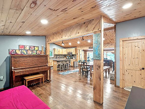 When you enter this 3 bedroom 2 bath lake home, you feel an instant sigh of relief! The incredible view from the large windows on the back of the house facing the lake simply say "it's time to relax". You can leave the hustle and bustle of your work day/life and enjoy the beauty of the view and the comfort of this lake home. You enter a large foyer, looking thru the dining room.kitchen into the family room then to the lake. The split floor plan provides a great primary suite with a large bedroom (with that same view) a large walk in closet and large primary bath. The other two bedrooms are great for kids or company alike, both off the living area, there is room for everyone to gather. The yard is naturalized with low maintenance, but room for some pops of color with flowers, bulbs or shrubs. The walk to the covered slip dock is gentle sloping to rip rapped shoreline and an arched gangway to your slip dock with boat lift and swim platform. The water depth is awesome as you are ON the big water with easy access to restaurants, marinas and all your lake friends. The water is clear and great for swimming, floating or just sitting on the dock and enjoying the views. If this is not enough to get you hooked, the house has a heated and cooled utility room on the lower level and a full basement. And if that's not enough you need to check out the HUGE detached garage. It has a workshop, 3 large roll-up doors one personal door and all the "man cave", "storage space", "playroom space" any one could imagine. Tall ceilings and eave heights make it a perfect place to hang out as the temp is always cool. And lastly, There is room to park your RV for those times when you may need additional space. This house has it all. Don't miss this opportunity, come see it today! Book your showing appointment on showingtime online. You are going to love it!
