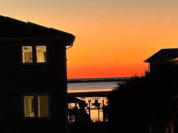 There are waterfront homes with views—and then there are homes where the sunrises and sunsets feel like daily events created just for you. This three-level coastal retreat overlooks the Intracoastal Waterway and includes a 25' assigned boat slip with a 10k lift, maintained by the HOA for easy boating access. The first floor features a fully finished 757 sq.ft. heated and cooled basement with LVP flooring, a flex room and den separated by double pocket doors, a utility room, abundant storage, and a door with a doggy door leading to the back yard. It also offers access to a single-car garage with a custom storage system, an outdoor shower, and a large covered storage area ideal for kayaks, paddleboards, boat trailers, and gear. With the conversion of the mechanical room into a bath, this level could serve as a private suite or rental. All three bedrooms on the second floor have Andersen doors opening to a freshly painted wraparound deck. The primary suite includes new carpet, privacy glass, and a tiled walk-in shower with dual rain heads. A hot tub sits just outside, and the laundry room is conveniently nearby. The third floor showcases the best views with an open living area, hardwood flooring, new Andersen doors that open to a Trex deck, a gas-log fireplace, and a well-appointed kitchen with granite, a large island, wine fridge, and showcase cabinetry. An interior Widow's Peak walk-up serves as a bright home office. Recent updates include new Pella windows, exterior paint (2024), architectural roof (2024), new Carrier HVACs (2024 & 2025), and a fully transformed back yard with sod, white fencing, and irrigation.
