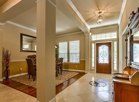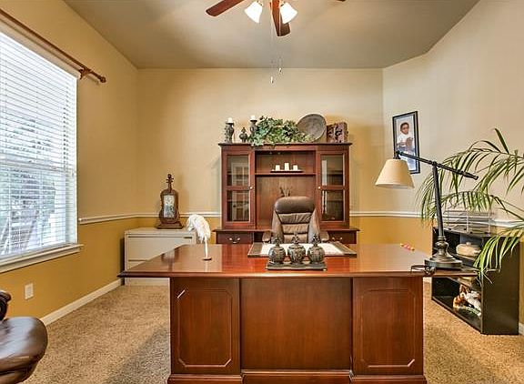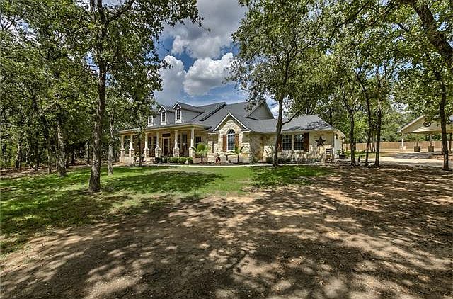 David Weekly semi custom sits on a secluded one acre lot wooded in gated community, private cul-de-sac. Features extended driveway, side garage entry, huge covered carport with stone and paint matching the main house, covered front and back patio, sun room, built in speakers inside and back patio, hardwood floors, tile, upgraded kitchen cabinets, quality upgrades throughout. Large office/study, huge sun room, plenty of natural light. Must See!