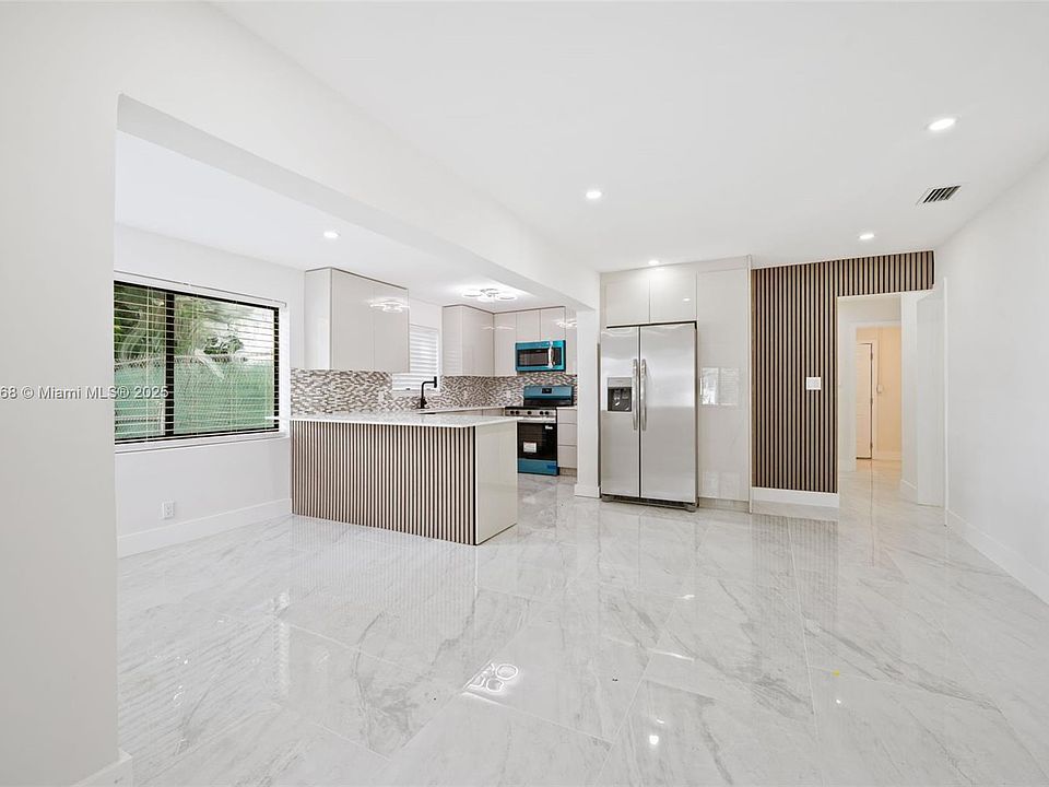 Spectacular newly remodeled cozy home with lots of features and HUGE lot of almost 16,000 sqf!!! Ready to move in and bring your toys like boat, RV, jet ski, etc. Make it your home or airbnb, close to the beach. 2025 roof, new A/C, impact windows, new European stile kitchen w/quartz countertops, SS appliances, new bathrooms, recessed lighting, tankless water heater, porcelain floors 48X24, designed doors with glass all-throughout, concrete area in backyard for pergola for parties and family gatherings.