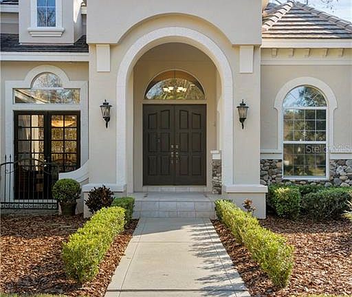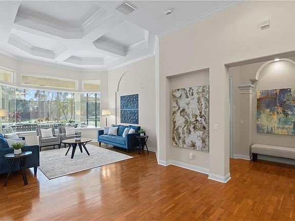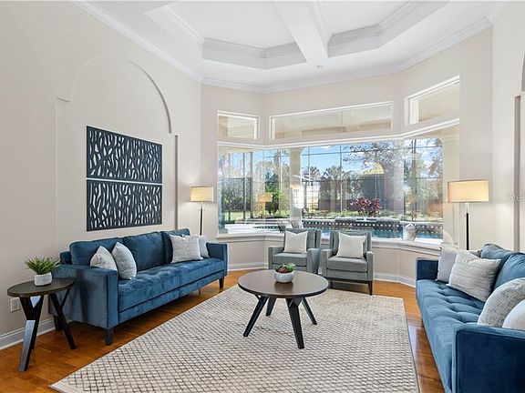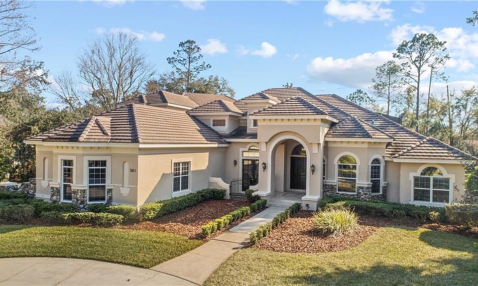 This beautiful custom built, Dave Brewer home is situated on over an acre in the guard gated community of Heathrow Woods. Featuring 6 bedrooms and 4 bathrooms, this home also boasts a large convenient in-law suite with separate laundry and kitchenette. Energy efficient in mind - 3 zone A/C SEER 17, R30 Insulation, double pane windows with UV tinting. Property was recently painted inside and out and new carpet added. Open floor plan that is highly functional featuring impressive designer touches throughout such as tray and coffered ceilings, archways, crown molding, plantation shutters, recessed lighting, built-ins, niches and so much more! Impressive formal living room with a huge seamless glass window giving views of the sparkling pool. Large 36x19, gourmet, eat-in kitchen complete, walk thru butler pantry, island, breakfast bar, stainless steel appliances and overlooks the family room. Retreat to the master suite with a separate sitting area, 21x7 walk-in closet, his & her sinks, spacious shower and a separate jetted tub. There is also a air conditioned bonus room above the garage giving you extra space for work-out space or storage. Adjacent to the owners suite is the office/den with built-ins. Outside is a large, inviting pool with a fountain and huge covered patio - all screened enclosed. Oversized 3 car garage with 240V outlet to charge your car. Heathrow Woods is part of the Heathrow Community with its own 24 hour manned gated entrance. Heathrow Community Amenities include 24/7 manned guarded-gates, Sawyer Lake Park w/ large playground including ball fields, basketball courts, soccer field & a clubhouse. Residents can enjoy Country Club living w/ outstanding golf course, tennis courts & pool facilities. Enjoy close proximity to I-4, 417, shopping, Colonial Town Park w/ fabulous restaurants & miles of walk & bike trails! Approx. 45 minutes to the beaches(Daytona & New Smyrna),approx. 45 min. to Disney. This property may be under audio/visual surveillance.