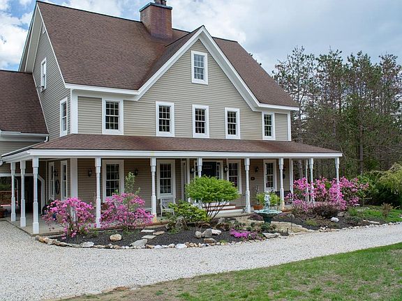 REDUCED $75,000!!! Welcome home to beautiful Deerfield, located right near Pleasant Lake, the center of town, school etc. This home boasts 5 bedrooms (4 bedroom septic) 3 Full baths and approx 5,300 square feet of finished space. The floors are gleaming and there are fireplaces and stoves in many of the rooms for extra comfort on our New England winter days. The kitchen was recently remodeled with Granite counters and all new stainless steel appliances including a double wall oven and mini bev fridge built right in. Don't miss the built in breakfast nook! The convenience of the 1st floor laundry & mudroom is key! Decks & Balconies to enjoy! 4 of the 5 bedrooms are on the 2nd floor incl. the MASSIVE 32x17 Master Suite with walk-in closet, sitting area, bath with jetted tub etc. It even has it's own entrance to one of the family rooms. Love to entertain? The 3rd floor is 43x34 & equipped with a wet bar! Do you love automobiles? Double decker 6 car garage (3 up and 3 below) and another massive garage under the main house w/ a 10x10 foot garage door to store a decent sized boat AND up to 3 more cars Massive 4 horse stall barn built in the 1700's w/ multiple levels for all the animals, cars, storage etc you could want. The original milking parlor is still there & antique tack hangs on the wall! Climb to the top of the cupola for a Pleasant Lake view! Massive Annex for an office? Business? Workshop? lots of parking! Camper hookup w/ pwr & wtr, possible sewer!
