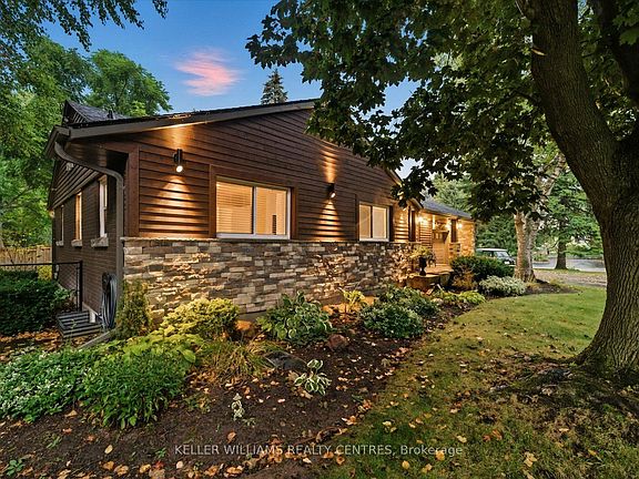 Situated in Newmarkets coveted downtown district, this meticulously renovated bungalow offers a rare opportunity on a premium lot with no neighbouring homes on either side. Set well back from the street and enhanced by striking updated wood siding, the residence delivers both curb appeal and privacy. The main level presents a sophisticated open-concept design, seamlessly integrating the living, dining, and kitchen areas. Smooth ceilings and 3/4 inch hardwood flooring flow throughout, creating a refined, cohesive aesthetic. Two well-proportioned bedrooms include a primary suite with a luxurious four-piece ensuite and a custom-fitted walk-in closet. The fully finished lower level extends the living space with two additional bedrooms, a generous recreation room, and a dedicated laundry area. Luxury vinyl plank flooring adds durability and style, while a spa-inspired bathroom with a separate soaker tub offers an indulgent retreat. Comprehensive updates completed in 2016 include the roof, windows, hot water tank, and full interior renovations, ensuring modern comfort and efficiency. An oversized single-car garage and an extended driveway provide ample parking and storage. The backyard is equally impressive, featuring a wide, private setting, large deck, mature trees and ample green space perfect for outdoor entertaining, gardening, or simply relaxing in a tranquil, park-like environment. Ideally located within walking distance to Main Streets boutique shops, fine dining, and everyday amenities, this residence combines timeless style, quality craftsmanship, and a premier setting for a truly turnkey lifestyle.