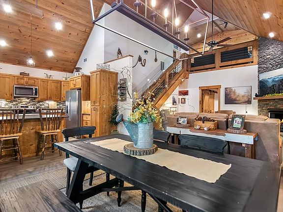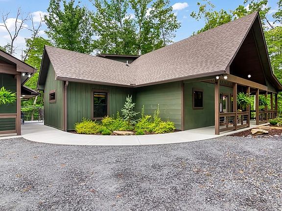 Experience mountain living at its finest in this custom-built 2021 home offering exceptional craftsmanship and thoughtful design throughout. This 3 bedroom, 2.5 bath residence features a desirable main-level layout with two bedrooms, two full baths, and a convenient laundry room. Step into the luxurious Master Suite, complete with French doors leading to a private hot tub patio. The chef's kitchen showcases hand-hewn cabinetry, stainless steel appliances, and black leathered granite countertops with a breakfast bar perfect for casual dining. The family room opens to a screened porch featuring a wood-burning fireplace with gas starter—ideal for cozy evenings year-round. A 37x24 detached garage/workshop offers loft storage and an EV outlet, providing plenty of space for hobbies or projects. Outdoor living continues with a 21x23 concrete patio, raised garden beds, and a storage shed. Whether you're seeking a full-time home or a mountain getaway, this property delivers quality, comfort, and style. If desired MOST of the furniture can be purchased on a separate bill of sale. Items and pricing negotiable.