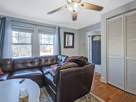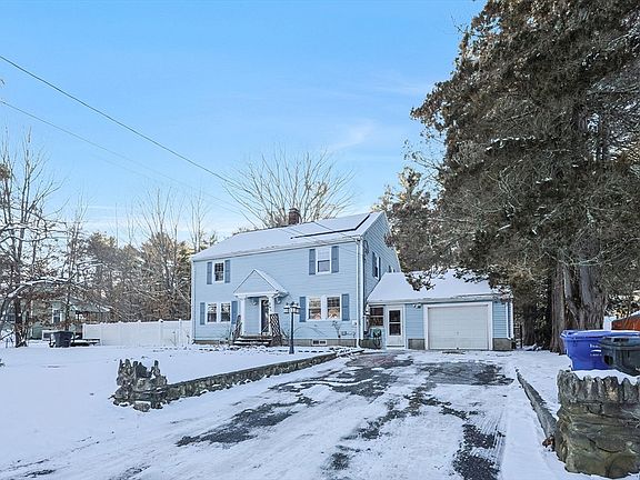 Charming 4 bedroom 2 full bath Colonial with many updates including owner owned power generating solar array and level 2 EV charger. Hardwood floors throughout. Updated white cabinet kitchen with granite, stainless appliances, double oven range, microwave, refrigerator, freezer and breakfast bar. First floor bedroom, study and full bath off kitchen. Living room has pellet stove. 3 bedrooms upstairs with whirlpool full bath and spacious laundry room. Open floor plan LL family room has 2nd laundry with office and exercise area ..Wooded, level 1/3 acre lot abutting conservation land with private, fenced in back yard. Breezeway connects home to attached garage and backyard. Convenient to restaurants, shops and commuting via Route 140, 126, I495 or commuter rail. Zoned for commercial forms of business as well as residential. A lot of opportunity for the money.