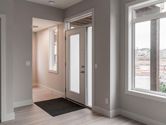 Ravines of Royal Oak by Janssen Homes offers unmatched quality & design, located on the most scenic & tranquil of sites in the mature NW community of Royal Oak. This 2BR, 1-full bath 1,233sf (1,233RMS) 24’-wide stacked townhouse with single attached garage boasts superior finishings. Open-concept-plan features a fresh, modern kitchen with full-height cabinets, soft close doors/drawers & full extension glides, quartz counters, undermount sink, plus 4 S/S appliances & convenient peninsula island opening onto both dining area with access to rear balcony & spacious living room. With over 900sf on the second living level there is ample space for a roomy master retreat, 4-pce bath with tile floor & quartz vanity, an additional bedroom which can be used as an office, & ultra-convenient laundry area. Convenient flex room on the main level along with a single attached garage with room to park an extra car on front driveway completes the package. Ravines of Royal Oak goes far beyond typical townhome offerings; special attention has been paid to utilizing high quality, maintenance free, materials to ensure long-term, worry-free living. Acrylic stucco with underlying 'Rainscreen' protection, stone, & Sagiwall vertical planks (ultra-premium European siding) ensure not only that the project will be one of the most beautiful in the city, but that it will stand the test of time with low maintenance costs. Other premium features include triple-pane, argon filled low-e, aluminum clad windows, premium grade cabinetry with quartz countertops throughout, 9' wall height on all levels, premium Torlys LV Plank flooring, 80-gal hot water tank, a fully insulated & drywalled attached garage that includes a hose bib & smart WiFi door opener, among other features. Condo fees include building insurance, exterior building maintenance & long-term reserve/replacement fund, road & driveway maint., landscaping maint., driveway & sidewalk snow removal, landscaping irrigation, street & pathway lighting, garbage/recycling/organics service. Bordered by ponds, natural ravine park, walking paths & only minutes to LRT station, K-9 schools, YMCA & 4 major shopping centres. Note - photos from a similar model in the complex.