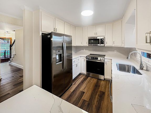 Completely renovated 3-4 Bedroom home in Mt. Hermon Estates. This 2 story has so much to offer- the main level has entry foyer - living room with stone fireplace & gas logs, dining area (or extended living space), eat in kitchen w/ updated counters, cabinets, backsplash & appliances, with access to a new deck, Laundry room, family room (could easily be converted to 4th BR), a full bath & a 2 car garage. The upper level offers a large primary suite with private bath featuring a tile shower, double vanity, and a spacious walk in closet. 2 bedrooms and a full bath. The walk out basement is unfinished - perfect for expanding, if you need more room. Professionally landscaped including a paver patio out back.