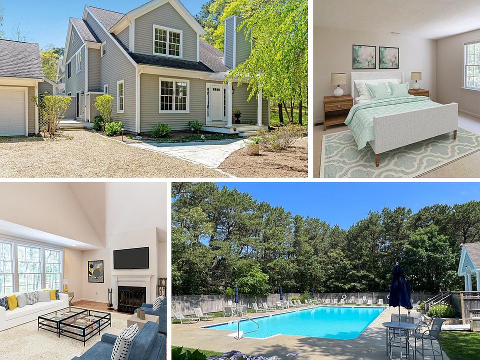 ASSOCIATION POOL, TENNIS, LAKE TASHMOO BEACH, PLUS GOLF NEARBY! This meticulously maintained 2+ bedroom, 3 bathroom end unit condo in the prestigious Tashmoo Woods Association has it ALL! The updated kitchen, with granite countertops and high-end appliances, opens to a dining room with access to a private deck overlooking lush woods. The living room, featuring a wood-burning fireplace, flows into the dining area, separated by a half wall for a touch of distinction. The first floor also includes a den and a renovated bathroom. Upstairs, both bedrooms have ensuite bathrooms. Upgrades to the original plans include forced hot air with propane heat and air conditioning, a gas stove, an alarm system, and Andersen sliding doors. Outside, the owners added 24 White Pine trees to enhance privacy, and the property features Belgian Block pavers, a flagstone walkway, and a large planting bed with a bird bath. This end unit offers a private driveway with ample parking, which is unusual in the Tashmoo Woods association. Additionally, there is a 1-car garage with custom shelving, and an attached storage shed for bikes and beach chairs. Tashmoo Woods amenities include tennis courts, a heated pool, a playground, a basketball court, a dock on Lake Tashmoo, and a private beach. It's also within walking distance to Mink Meadows Golf Course. Don't miss this chance to own a beautifully upgraded home in a sought-after community. BONUS: Located in the Tashmoo Watershed area, the sellers are willing to contribute to the upgrade of a new denitrification septic system. **Note: some images include virtual staging.