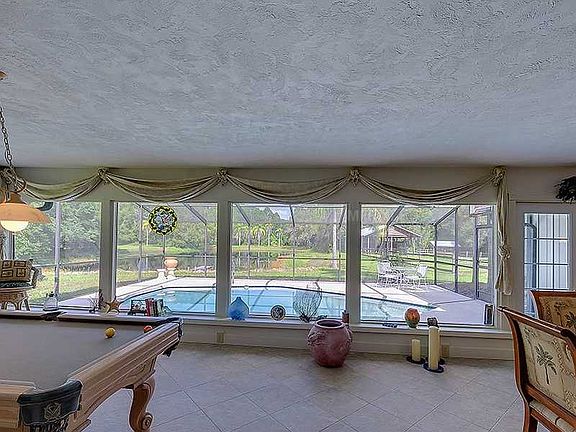 This 3 Structure / 6 Acre+ Gated Property with a large pond has it all. The updated pool home features diagonal matte finish porcelain tile flooring...5 1/4 baseboards...over-sized family room with large windows that offer beautiful views of the pond and grounds. A cozy living room with a wood burning fireplace. Open floor plan with a centrally located kitchen with granite countertops and stainless steel appliances. The Concrete Block 26x50 out building has 12' ceilings 11' garage door 240v wired...perfect for your business car collector or just man space. The 2-stall barn with attached paddock has a fenced in pasture. Your horses will love the lush green pasture and big pond. No deed restrictions to allow an unrestricted lifestyle...just 15 minutes from downtown Sarasota.