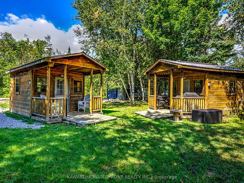 This is a prime building lot on the Burnt River with a multitude of attractive features, beginning with its location at the end of recently paved and municipally maintained Shuttleworth Road in an area with many attractive waterfront properties. The lot is just under 0.4 acres in size with 100 ft of south-east facing waterfront that is perfect for swimming - lovely limestone steps lead to sandy wade-in shoreline that transitions to deep weed-free water with a very gentle current. Privacy is excellent here, with undeveloped land along the south lot line and mature trees along the north lot line, with plenty of level open area in-between for outdoor activities. The property is currently used as a "glamping" site with two attractive bunkies - one for lounging and one for sleeping. There is also an outdoor privy with a Sunmar compositing toilet, an enclosed outdoor shower, a covered wood shed, and a patio with a fire pit and outdoor eating area. Hydro has been brought into the property (200 Amp) and there is a drilled well. The property is being sold turn-key, although the owners are willing to remove the bunkies if the new owners wish to proceed directly to a new-build. Recreational opportunities include kayaking along the undeveloped western shoreline that extends for approximately 3 kilometers to the south, and the nearby Victoria Rail Trail is ideal for biking and hiking, and provides easy access to a large network of ATV and snowmobile trails.