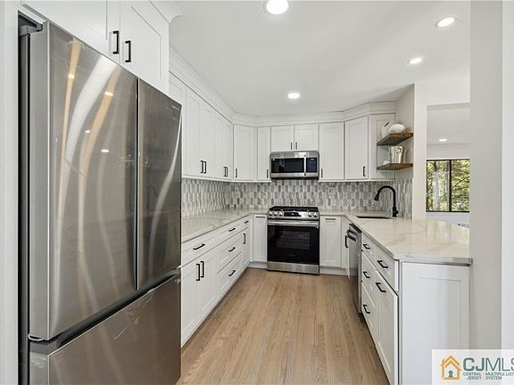 Completely renovated, light and airy open layout townhouse in a highly sought after development of Foxborough in Old Bridge. Located on a cul-de-sac at the end of the street, this spacious home with 3 levels of living space features hardwood floors on the main level, new floors upstairs and in the basement, new interior doors, moldings, recess lights, new HVAC, newer HWH. Beautifully designed open concept kitchen with eat-in island, modern quartz countertop, natural marble and shell backsplash, soft close cabinets w/undercabinet light and SS Appliances package. Fully redone bathrooms. Above ground basement. Oversized 2 car garage with plenty of storage. Generous size deck offers care free enjoyment of outdoors. Commuters' dream with close proximity to Rt.18 and Rt.9 with NYC bus stop