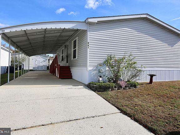 Welcome to this beautifully well-maintained manufactured home featuring 3 Bedrooms 2 full baths, 2 car carport with concrete driveway accommodating approx. 3 cars boasting 1,500 Sq ft. ready to make it your own in the desirable 55+ community of Maplewood Village. Step inside the front door to the bright open LIVING ROOM that features a raised ceiling, freshly painted, ceiling fan w/Light built-in speakers, new upgraded w/w carpeting and freshly painted. The FORMAL DINING ROOM also boasts raised ceiling, new w/w carpeting, a chandelier, and has been freshly painted. The EAT-IN KITCHEN provides plenty of oak front cabinetry for storage, breakfast bar and dining area, built-in stereo speakers that also plays in the living room and primary bedroom, New 8” wide vinyl plank flooring; double stainless-steel sink, ceiling fan w/lighting, newer garbage disposal, newer Magic Chef gas range, dishwasher. Off the kitchen is the convenient LAUNDRY/UTILITY ROOM that features New 8” wide vinyl plank flooring and Outer Entry Door w/new wood stairs. The spacious PRIMARY SUITE features raised ceiling, new w/w carpeting, built in stereo speakers, walk-in closet with lighting fixture, a separate sitting room area with raised ceiling and its own private bath. The spacious PRIMARY BATH features raised ceiling, new upgraded vinyl flooring, new vanity, tub/shower combination, space for a linen closet, and a newer Kohler toilet. TWO ADDITIONAL BEDROOMS offer generous closet space, newer carpeting, and lighting fixtures. A second FULL BATH features skylight, tub/shower and completes the layout. Maintenance free Vinyl siding and capped trim. OTHER AMENITIES FEATURING roof (approx. 8 Years old), vinyl sided, shed w electric and new roof for extra storage, handicapped ramp leading to front door. Conveniently located to Route 45, Route 55, New Jersey Turnpike and Route 295 north and south to be in Delaware within 25 minutes and Jersey shore within 60 minutes.