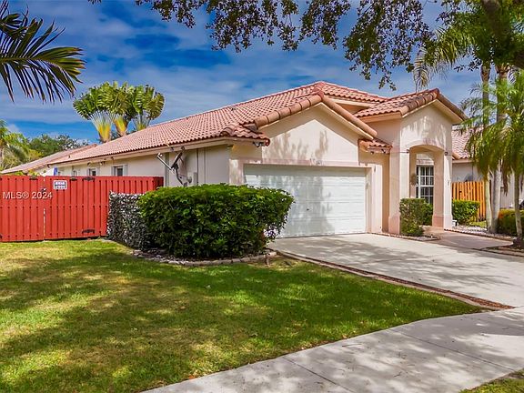 Great opportunity to own your own one-story Single Family home in western Davie on Weston Border in Vista Filare neighborhood. Vaulted ceilings, excellent east to west sunny exposure for sunny mornings & peaceful sunsets in your own private retreat, Fully fenced back yard. Beautiful Gunite 14 x 20 IG pool w/newer pool salt cell 2020. Paver patios surround pool, newer vaulted awning over deck area (2022). Primary bathroom w/double vanity, soaking tub & sep. shower. Two living areas: Family Room, Living Room, Ceramic tile flooring, newer S/S appliances. Remodeled hall bath features Shower and Tub combination. Accordian Hurricane shutters (2019). Newer Rheem HWHeater (2022).2 car garage driveway. Great schools & easy access location. Price reflects some TLC to make this your dream home!