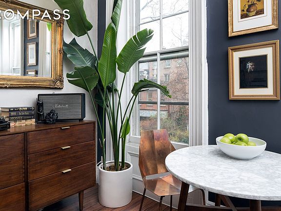 THE PERFECT LOCATION. Sunlight pours in through large windows facing beautiful gardens with tranquil views. This ultra charming one bedroom has a decorative fireplace in a lovely townhouse on one of the prettiest blocks in the West Village. Small but functional kitchen, hardwood floors, and high ceilings. No Pets.