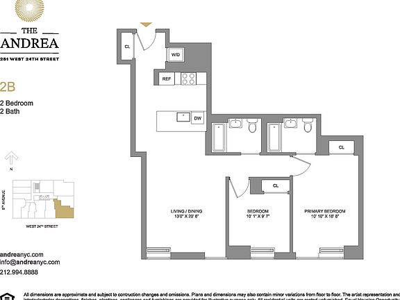 Welcome to Residence 2B at The Andrea. Clean and modern, this South facing two-bedroom, two-bathroom home boasts an island kitchen and expansive living space, with ample storage throughout, flooded with natural light.