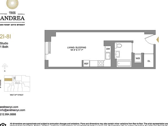 The Andrea is located in the heart of Chelsea, at the corner of 24th Street and Eighth Avenue. Beautiful and vibrant, Chelsea is a mix of brownstones and historic buildings, sleek modern architecture, colorful art galleries, great shopping and lush green spaces. When you reside at The Andrea, all of this and more are yours for the taking.