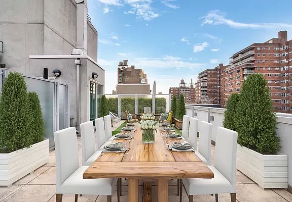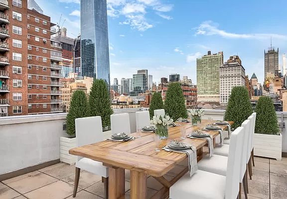 Did the shutdown have you dreaming of owning private outdoor space? Introducing a once-in-a-lifetime opportunity to spend your summers and beyond lounging on the largest, rooftop terrace currently available on the downtown market at this price point. The sprawling 567-foot terrace is accessible directly from your penthouse-level residence and provides year round entertainment along with spectacular and expansive city views from the Empire State Building to the lights of Times Square. Plenty of space for multiple seating areas and even a 8-10 person dining table for your memorable dinner parties under the stars. Or set up a yoga and exercise area, a play station or create your very own organic vegetable garden. The options are endless so take advantage of what most New Yorkers dream of having! This sophisticated penthouse offers a smartly designed, corner layout, soaring 10-foot ceilings, dramatic city views from each room and three exposures that provide brilliant sunlight making every day a pleasure to wake to. The open floor plan seamlessly blends the top-of-the-line, chef's kitchen with the dining alcove and living space, centered by a massive black granite countertop island. Perfect for communing with friends or just pulling up a stool and organizing your day. Kitchen appliances include a Viking range with overhead vent, a SubZero refrigerator, a wine cooler and Miele dishwasher. Additional features include newly refinished hardwood floors, central A/C, a vented washer/dryer and an X-large storage unit. The bathrooms come with complete Kohler fixture packages including a deep soaking tub, marble and limestone material used throughout, radiant heated floors and double sinks and an over-sized skylight in the master bathroom. The Onyx Chelsea is a full-service, luxury condominium building designed by FX Fowle and offers a 24-hour doorman along with the nicest staff in the city. Special features include in-lobby cold storage designed by Fresh Direct, a beautifully furnished rooftop terrace with views of the Empire State Building, a state-of-the art fitness center, a bike room and a stunning lobby with an original Vera Wang sculpture. It's perfectly located within steps of arguably the best mix of restaurants, shopping, entertainment and culture in the city. You'll love having the Meatpacking District, the West Chelsea art galleries, the drop dead gorgeous Highline Park, Chelsea Market, The Whitney Museum, the West Village and Madison Sq Park in your rotation of weekly activities. World class shopping is waiting for you at the renowned Hudson Yards with over 100 diverse shops to scratch that itch. Looking to keep active? Enjoy having the Chelsea Piers, The Hudson River Greenway and the Chelsea Waterside Park as neighboring go-to spots. It's really the idyllic lifestyle we all envisioned when deciding to live and work in Manhattan. Transportation is a breeze as well with the A/C/E/L 1,2,3 subway lines within a block or two Act quick as this home will be spoken for soon!