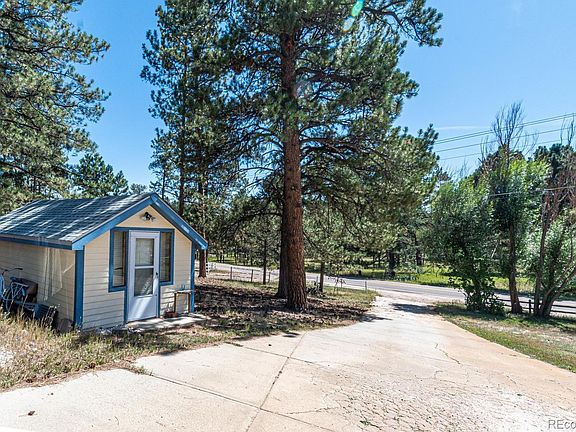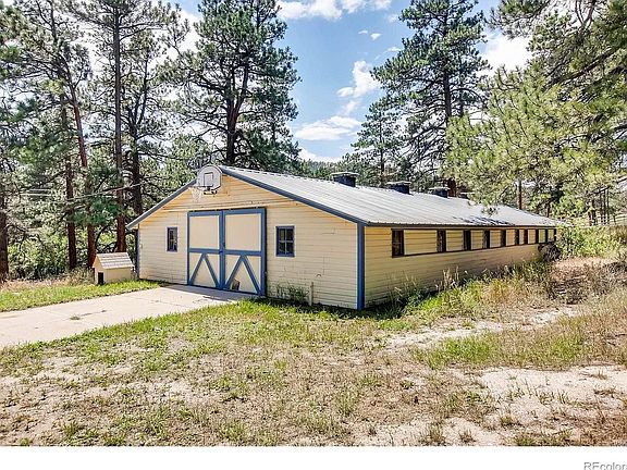OPPORTUNITY TO OWN A PIECE OF LARKSPUR HISTORY! Charming 1924 Farmhouse on 1.42 treed acres offers a Ranch floor plan with finished basement. Zoned ER which allows for live/work purposes for home based businesses. Tons of extras from 2100 sq ft outbuilding/barn with concrete and electric. 1 Room Cottage for home office, office, storage or guests! Chicken Coop as well as oversized 1 Car Detached Garage. Kitchen features gas cooktop and newer appliances. Private Master Bedroom with vaulted ceilings and ensuite 5pc bath with jetted tub. Newer Pella windows throughout. Perfect Mudroom/Laundry off back entrance. Finished Basement offers bedroom, 2 storage areas and large rec room with wood burning fireplace. New well pump in a shared COMMERCIAL well installed 6/2020, new boiler system in the basement, roof is only 4-5 years old. Backs/Sides to acres of Private wooded land. Endless opportunities under $500,000 in Larkspur! Unincorporated Douglas County. No HOA and no covenants. Call and schedule your showing today before it's gone!