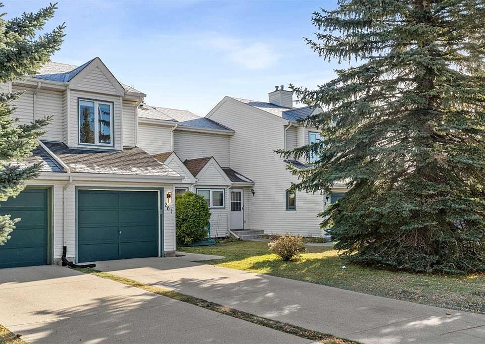 Completely Renovated and Move In Ready! Welcome home to this fully updated 2 bed 2.5 bath townhome – vinyl plank floors, updated lighting package, freshly painted and more! Main floor features a fully renovated kitchen with new cabinets, new stainless appliances, stone countertops, under cabinet lighting and gorgeous finishes. The kitchen opens to the living room/dining room which features vaulted ceilings, gas fireplace, huge windows and access to the private balcony that offers views of mature trees, private yard and walking path. Main floor also has a half bath and access to the attached garage. Upstairs you will find 2 large bedrooms each with their own fully renovated ensuite bathrooms, primary bedroom has a large walk in closet. The walk out basement is bright and open, perfect for a rec room or office space. Basement also has brand new washer/dryer in the laundry room. This townhome is in the community of Sandringham in Sandstone Valley – well established community with mature trees/landscaping. This is not a condo but has an HOA that takes care of lawn mowing and snow removal. Quiet location with walking paths, playgrounds, schools and shopping close by. Across the street from Nose Hill and easy access to 14th Street and Stoney Trail/Deerfoot.