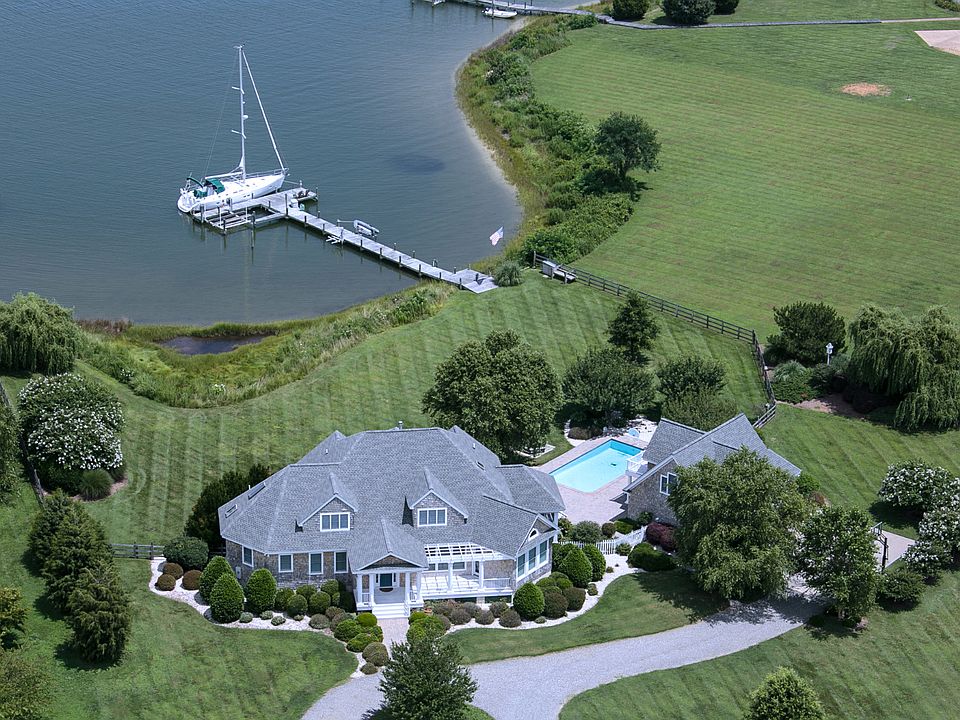 In an intimate community, bordered by Indian Creek and Henry's Creek, just off the Chesapeake Bay, this three-acre property offers a protected, deep water harbor. The enchanting residence blends brilliantly with its natural surroundings to create balance and symmetry. The detached, two-bay garage features enchanting, waterfront guest quarters. A swimming pool and private pier with boatlift and two jet-ski lifts complete this luxurious waterfront property.