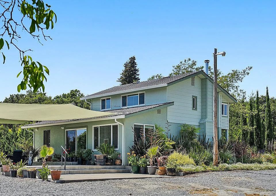 Nestled on a serene 4.94-acre parcel, this beautifully maintained farmhouse-style home offers an extraordinary mix of rural peace and convenient living. Surrounded by vineyards, fruit trees, and garden plots, the property brings an idyllic sense of calm perfect for those who appreciate nature, privacy, and space.