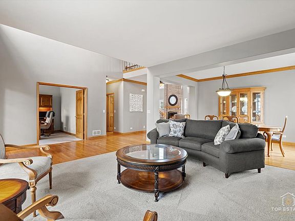 Stunning Cottage-Style Home with a breathtaking Outdoor Oasis! Welcome to this exquisite home, featuring a beautifully appointed brick-accented front exterior that adds timeless charm and curb appeal. A side-load three-car garage enhances the home's striking facade while providing ample parking and storage. Nestled in a sought-after neighborhood in Geneva, this home offers elegance, space, and unparalleled comfort. Step inside to a grand two-story foyer that sets the stage for the impressive design throughout. The two-story family room is a breathtaking space, highlighted by a dramatic floor-to-ceiling fireplace that serves as a stunning focal point. The large gourmet kitchen is a chef's dream, featuring a spacious island, eating area, ample counter space, and a generous pantry for all your culinary needs. Elegant crown molding runs throughout the main living areas, adding an extra touch of sophistication. Beautiful hardwood floors flow throughout most of the main level, enhancing the home's warmth and character. The elegant living and dining rooms offer refined spaces for gatherings, and the private den is perfect for work or relaxation. Additionally, the spacious main-floor game room provides endless possibilities for fun and entertainment. Upstairs, the expansive main suite boasts two walk-in closets and a luxurious spa-like bath with a large soaking tub, separate shower, and dual vanities. A dramatic bridge separates the three spacious secondary bedrooms, two of which feature walk-in closets, ensuring ample storage and privacy. The fully finished basement is an entertainer's dream, featuring a media & billiards room, exercise room, craft room, rec room, and a full bath-ideal for hosting or unwinding. Step outside to your private backyard oasis, complete with an 18' x 36' in-ground pool, a sprawling paver patio, and lush professional landscaping-perfect for summer gatherings and serene relaxation. Recent updates include a new roof and gutters replaced in 2018. This home offers luxury, comfort, and entertainment all in one. Don't miss this rare opportunity-schedule your private tour today!