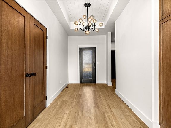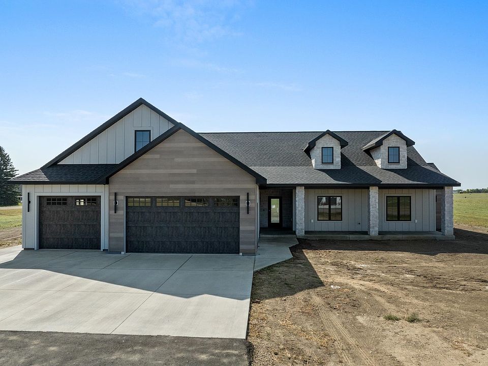 Welcome to this luxury custom built home by one of Minot's local contractors, Ready Builders. Are you wanting new, but the build process is overwhelming? Then they have you covered with this sprawling single level home in Galusha Ranch. With finishes like custom cabinets from Minot Sash & Door, solid Oak doors, Pella windows and exterior doors, tiled bathrooms, Quartz countertops, Aquaproof high end vinyl flooring, Smartside siding and exterior stonework, you know the quality is there. This home will be one of a kind with detailed finishes like mixed metal hardware and plumbing fixtures, unique lighting throughout, a soaking tub and shower wet room in the primary suite bathroom, detailed accent walls with wallpaper and quartz backsplashes, a fully finished garage with heat, epoxy finished floors, and a custom built in sauna. The main level is 2332 sf with the large primary suite featuring fully tiled bathroom, double vanity sink, wet room tub & shower with glass surround and a walk in closet, 2 additional bedrooms, a full bath with tile surround, the living room with a stoned fireplace, wood beams on the ceiling, patio doors to the back covered porch, kitchen with custom cabinets, quartz tops, Z-Line appliances and a huge walk in pantry. The laundry room is right off the garage entrance along with a custom-built bench and a half bath. The upstairs is fully finished with a bedroom, family room/bedroom flex space and a 3/4 bathroom. The 3 stall 1064 sf garage is completely finished with epoxy floors, floor drains, textured and painted walls, LED Lighting and a custom built in sauna. They finished it off by paving the driveway. Don't miss out on this one, call your Realtor today for a tour.
