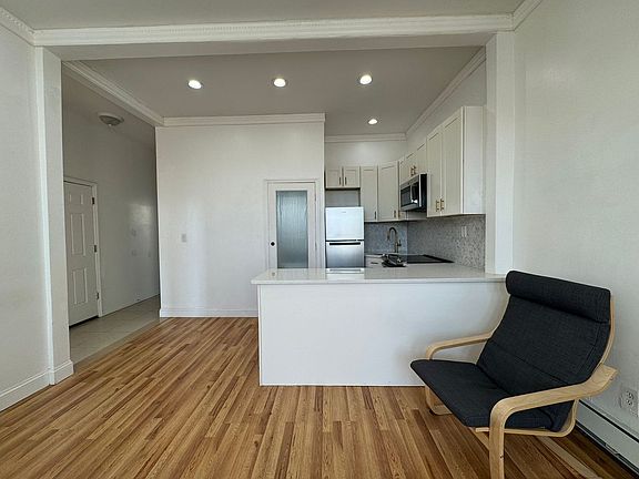 Situated near Broadway Junction, this three bedroom, 2 bathroom apartment is conveniently accessible to numerous trains lines, including the J/Z, A/C and L train lines. The apartment has been fully renovated with no finishes spared. Entry into the large, open living space, which has southern exposures for plenty of natural light, hardwood floors, high ceilings and an electric fireplace built into the mantel and overhead, recessed lighting throughout.