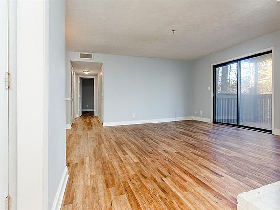LOCATION! UPDATED! BOTTOM FLOOR, CORNER UNIT CONDO WITH PRIVACY! This updated condo is minutes from the Battery and is located in the desirable Vinings Run community. Enjoy privacy from your covered back porch with the privacy and tranquility of the wooded view and creek that runs behind. You can even hear a waterfall after it rains! The home has hardwoods throughout, white cabinets, upgraded quartz counters, gas cooking, designer backsplash, a cozy gas fireplace, a keeping room behind the fireplace (perfect for a home office), an upgraded tile shower with niche, and a utility room with a full-size washer and dryer. Amenities include 2 pools, tennis courts, and a dog park. Easy Access to I-285, I-75, 41, numerous restaurants, the Battery, and Cumberland Mall. Condo fee includes trash, water and more! Don't miss out! WOW!