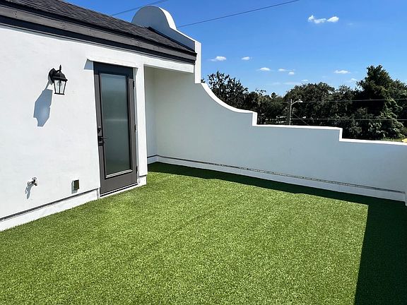 Newly Built Townhome. One or more photo(s) has been virtually staged. Completed in August 2024, these Dutch West Indies-inspired Palmetto Beach Villas are close to Ybor City, Downtown, Channelside, & Crosstown Expressway to Brandon or Gandy. The superior design includes natural lights entering windows on 3 sides! Each 2-story townhome has 3 BR. 2.5 baths, with attached garages PLUS a Roof-Top Deck for relaxing or entertaining your guests. Nine-foot ceilings with open floorplans downstairs, 5-panel doors, and hurricane impact windows all trimmed with wood molding. Luxury 5" Vinyl, Shaker-style cabinets doors with 42" Upper cabinets, reach-in pantry, Island bar sink, elegant white quartz counters, stainless hood and appliances including slide-in range and built-in microwave. Glass sliding door leads to outdoor patio overlooking private, fenced backyard, allowing natural lights to enter this Kitchen/Dining/Family room floorplan. Upstairs the Primary suite includes a frameless glass walk-in shower and dual vanities, oversize Primary bedroom, and walk-in closets. Guest bedrooms share a Jack-n- Jill bath with tub/shower. Just blocks from the water De Soto Park Recreation Complex with fishing pier, kayaking, football fields, skate-park, pool, playground, & dog walk. Be among the first to enjoy healthy living in your own home, in one of Tampa's most convenient neighborhoods.
