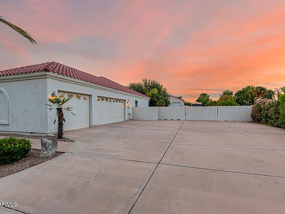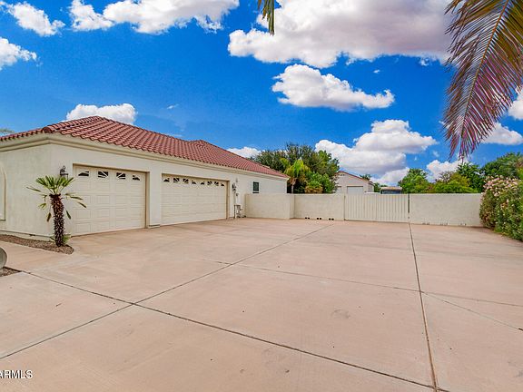 The primary suite offers a peaceful retreat with a private ensuite bathroom that includes a large soaking tub, perfect for unwinding at the end of the day. Step outside to enjoy the best of Arizona living a huge covered patio overlooks a sparkling pool and lush landscaping in both the front and back yards, making it ideal for entertaining or relaxing outdoors. Need room for toys or tools? You'll love the RV gate, the awesome RV garage, and the spacious workshop offering plenty of space for storage, hobbies, or outdoor equipment. Located near top-rated schools, shopping, dining, and recreation, this home offers the perfect blend of space, convenience, and lifestyle.