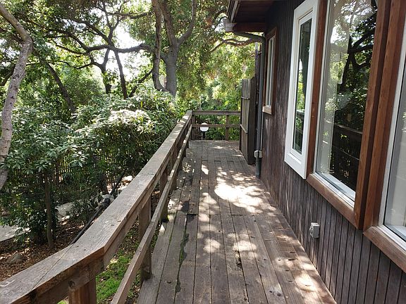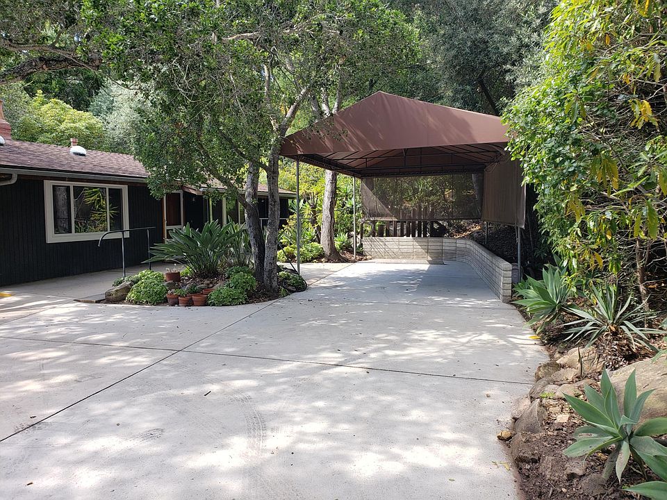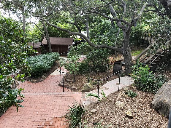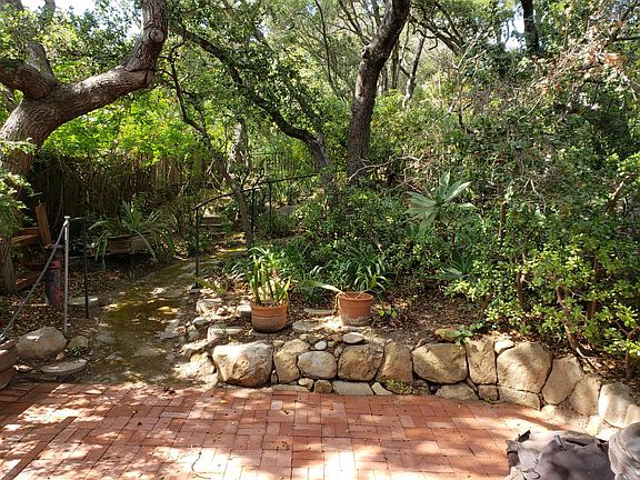 Very Recluse, Private, House is on 1/2 acre lot with a coupe dozen large oaks trees, Santa Barbara Cottage Style, open concept with central fireplace large bonus/utility room, butler's pantry, new flooring, paint, wood beam ceilings, has new appliances. This has lots of character, lots of garden space and very private. House does not front Foothill, enter from private drive. tenent pays all utilities