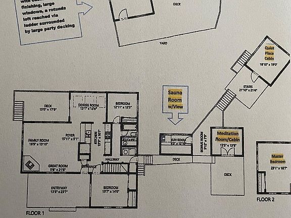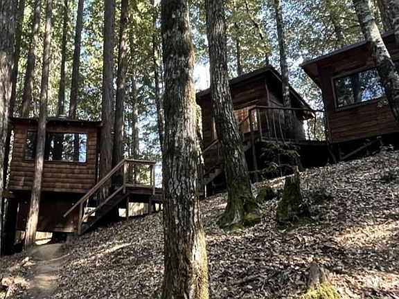 Custom lodge features 3 bed 2 ba 2 story open floor plan MAIN HOUSE on big lot with THREE separate 1 room ACCESSORY BUILDINGS: SAUNA ROOM plus MEDITATION ROOM plus MOUNTAIN REFLECTION rooom that winds its way across wooded pathways to the spectacular 2 story TREE HOUSE with party sized large decking. Each has custom wood work, large windows, special lighting fixtures, cedar walls & ceilings woodwork, skylights, patios and decks to create the most amazing housing opportunity in Brook Trails. You enter the (2 story tree house) thru its rounded entrance door w/ small widget window to a remarkable interior with large windows, custom cedar walls & ceiling bracings, warmed by a cozy wood stove, to its amazing 2nd story loft w/ a rounded cupula lined with lights reached by a slider ladder. This property consists of a main house plus 3 accessory one room buildings plus a 2 story tree house with a huge deck for gatherings. ? great CORPORATE RETREAT MUST SEE 3 D TOUR / DOLLHOUSE