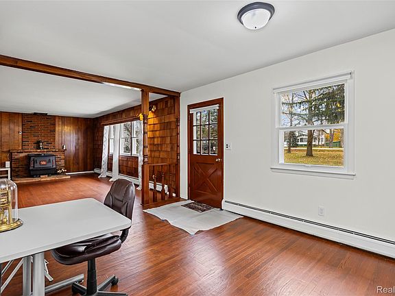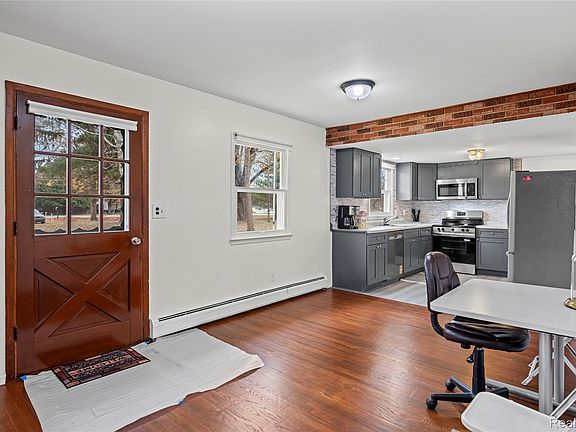 Welcome home to this charming country ranch in Canton, situated on 5 beautiful acres! This 3 bedroom, 1 bath home offers the perfect blend of rural charm and modern updates. Step inside to an open concept layout that seamlessly connects the living area to the kitchen. The living room features warm newly refinished hardwood floors and classic wood paneling, while the updated kitchen includes gray shaker cabinets, stainless steel appliances, new backsplash, and marble-look countertops. Hardwood flooring flows throughout adding warmth and character. Fresh Paint, Updated Bath, New exterior facia boards and gutters. The full unfinished basement provides endless possibilities for additional living space, storage, or a workshop. Basement has sump pump and warranty for waterproofing & foundation work. Outside, you’ll find multiple outbuildings including a classic red barn, workshop, and storage sheds—perfect for hobbyists, gardeners, or small livestock. The 5 acre parcel backs to Fellows Creek Golf Course and offers plenty of space and privacy for outdoor activities, gardening, or simply enjoying nature. Some outbuildings need updating but provide ample storage and potential. Enjoy peaceful country living while being just minutes from Ford Rd shopping, dining, and expressways. Move-in ready—schedule your private showing today! BATVAI