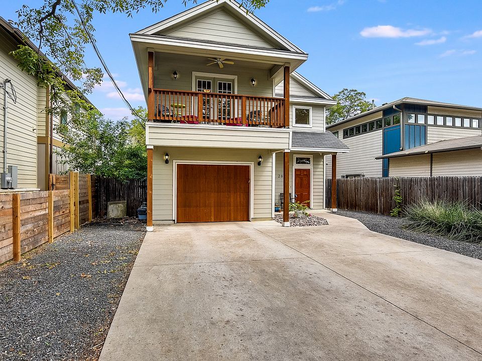 Located in the heart of East Austin and walking distance to all the great restaurants, shops and bars, this home is open and modern with an abundance of natural light. Perfect for entertaining, downstairs hosts a great room with stained concrete through-out and opens onto an enclosed patio. The kitchen has granite and custom wood cabinets. All bedrooms are upstairs with bamboo and travertine floors. Master includes a walkin closet, double vanity, over-sized shower and covered balcony. Low maintenance xeriscaped front and backyard.