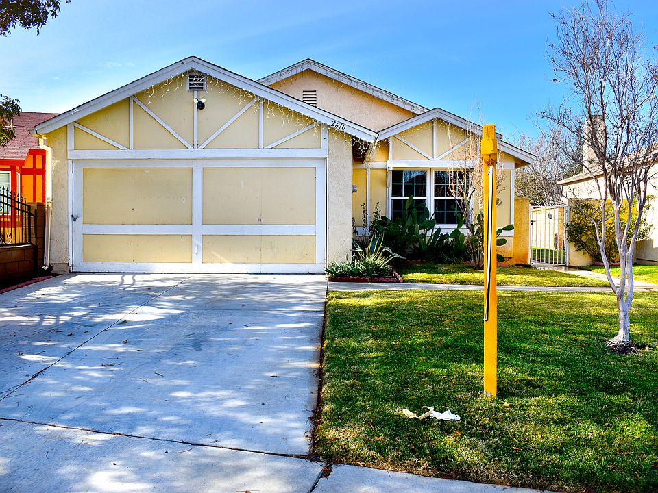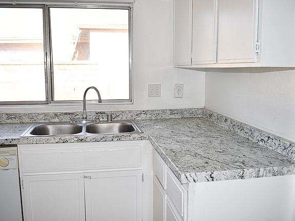 Find this charming home nestled in a quiet neighborhood surrounded by mature trees, luscious green grass & shrubbery. Stroll through a gated entrance & inside to be awestruck by the freshly painted walls, brand new cozy carpet, vaulted ceilings, brick wood burning fireplace & two large sliding glass double doors allowing the bright natural light to shine through. Find the upgraded kitchen off the dining space with brand new counters & matching backsplash, meticulously kept tile flooring & freshly painted cabinets. Travel down the hall to find a bathroom with a freshly reglazed bright white bathtub, tile flooring & stainless steel fixtures. There is an additional bathroom & 3 bedrooms including the extra large converted garage into a massive master bedroom with good sized closet & plenty of storage space. In the backyard, relax under the covered patio & enjoy the privacy that the tall brick walls bring to this beautiful starter home. Title shows 937sqft does not include garage conversion.