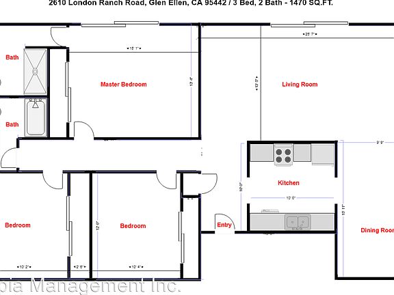 This 1470 square foot single family home has 3 bedrooms and 2.0 bathrooms. This home is located at 2610 London Ranch Rd, Glen Ellen, CA 95442.