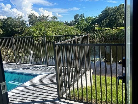 Fenced poolQuartz countertopsBackyard oasisBright open-concept layoutPeaceful canal viewsDual showerPrimary suite