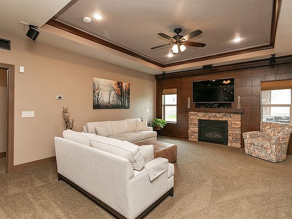 Beautiful ranch home with tons of upgrades. Hardwood floors on main level with open floor plan. Fabulous kitchen with huge walk-in pantry, granite counter tops with glass backs plash, stainless Thermador dishwasher & gas range with hood. Covered deck with plantation shutters that can withstand high winds and has mini kitchen with sink and fridge. Large primary suite with tray ceiling and sliding barn door with custom built-ins and en suite with granite counter tops and tiled shower and toe kick pan for central vac. Huge walk-in closet. Custom lighting throughout home & lots of upgraded technical features with whole house sound system. Finished basement with daylight windows with 3/4 bath, 4th bedroom & family room with TV projection. Home has 4 car garage with 3 & 4 as tandem. Garage has running hot & cold water and has AC & heat. Irrigation system in yard. Storage area under deck for mower/snowblower. All information obtained from Seller and public records.