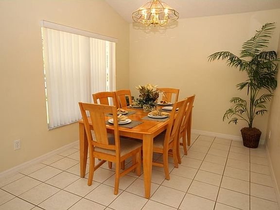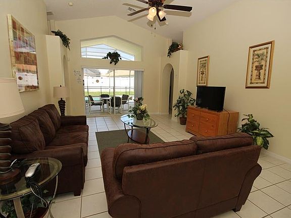Fabulous 4 bed 3 bath home with Pool/Spa. This home is ready for a new owner and is being sold fully furnished. Great opportunity for a first time home-buyer. The kitchen, dining room and living room are all tile. There are 2 master bedrooms with en-suite bathrooms. The two twin bedrooms share a hallway bathroom that also has a door from the hallway to access the pool deck. There is a covered lanai to provide shade on hot days. The sparkling pool has a built-in spa to relax after a hard day at work. The homeowners association is optional making ownership costs very low with a fantastic location to all of Central Florida's amenities. The home is currently in a short term rental program. Ask for a showing today !
