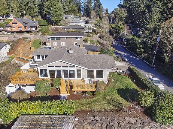 Sharp 4 Bedroom 2.75 bath home features Olympic & Puget Sound views. Gourmet kitchen w/6 chair island bar, professional grade gas range and hood, cement counter tops, vaulted ceiling. master suite includes spacious walk in closet, vaulted ceiling, 4 piece on-suite with tile counter top, heated floor and private viewing deck. Addition features include central A/C, central vacuum, two hot water heaters, 50 year roof and 480 sq ft attached shop with double entry doors. A must see won't last!