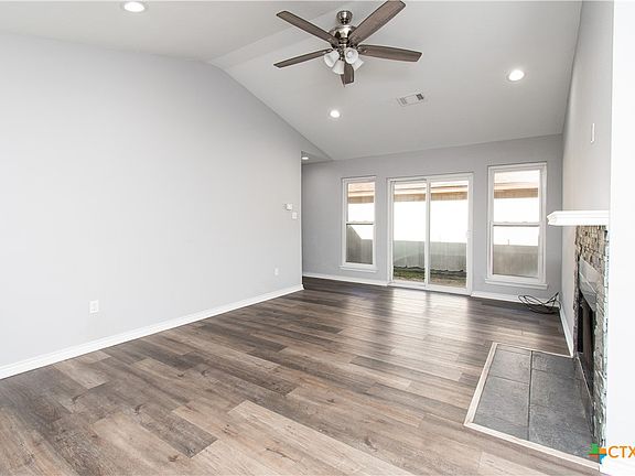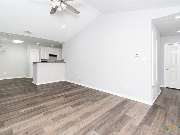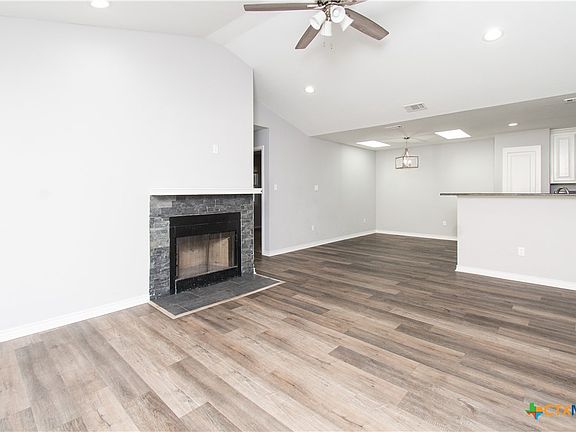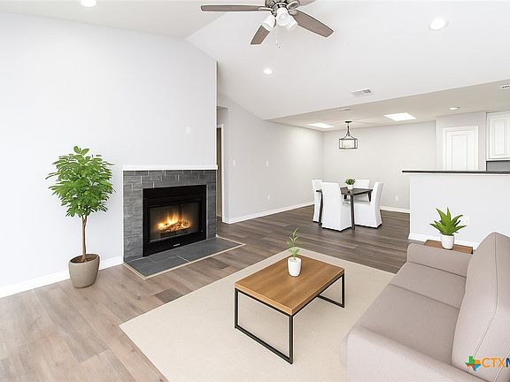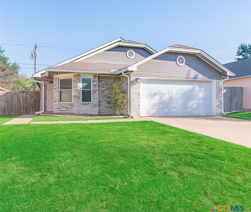Step inside to discover a warm and inviting living area featuring a brick-accent fireplace (as reported), ideal for gathering even on cooler Central Texas evenings. The adjoining kitchen is efficient and open to the dining area—making it easy for everyday living and casual entertaining alike. The three bedrooms are tucked privately down the hall, offering a smart split that separates the primary suite from the other bedrooms. With two full baths you’ll appreciate the convenience and thoughtful layout—rare at this price point in this area.