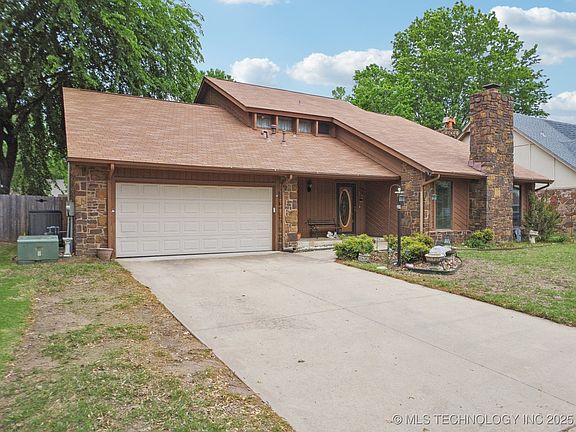 This large family home has been well taken care of by its former 40+ year owners and is ready for a new family. Four good-sized bedrooms with 2.5 bathrooms, an oversized 2-car garage with shelving, and a good-sized back yard that faces the green belt. Walk into a welcoming interior with vaulted ceilings and a feature fireplace, formal dining, a well-appointed eat-in kitchen with a small pantry, and easy access to the backyard with a covered patio and storage shed. The primary bedroom is on the first floor with a large private bathroom and walk-in closet. A half bath, utility room, and plenty of storage round out the first floor. The Stairs lead to the second floor with a further 3 bedrooms, a full-size hall bath, and a huge loft/family area with a wet bar. Lovely quiet neighborhood with easy access to all Broken Arrow has to offer, schools, shopping, an array of local eateries, and easy access to the highway.