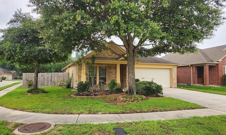 Timeless elegance and modern comfort in this beautifully appointed home, showcasing painted accent walls, graceful alcoves, striking archways, and refined finishes throughout. The inviting floorplan flows seamlessly from the spacious living area, highlighted by a cozy gas log fireplace designed for memorable gatherings. The oversized island kitchen is a chef’s dream, offering abundant cabinetry, sleek stainless steel appliances, granite countertops, and a French door refrigerator. The primary suite features an arched ceiling, a generous walk-in closet, and a spa-inspired bathroom complete with a deep garden tub, separate glass-enclosed shower, and dual vanities. Secondary bedrooms are equally impressive. Step outside to your private covered patio overlooking a meticulously landscaped yard, perfect for outdoor entertaining or serene relaxation. This residence offers unmatched convenience and is ideally located near I-45, Hardy Toll Road, and the Grand Parkway (99), shopping and more!